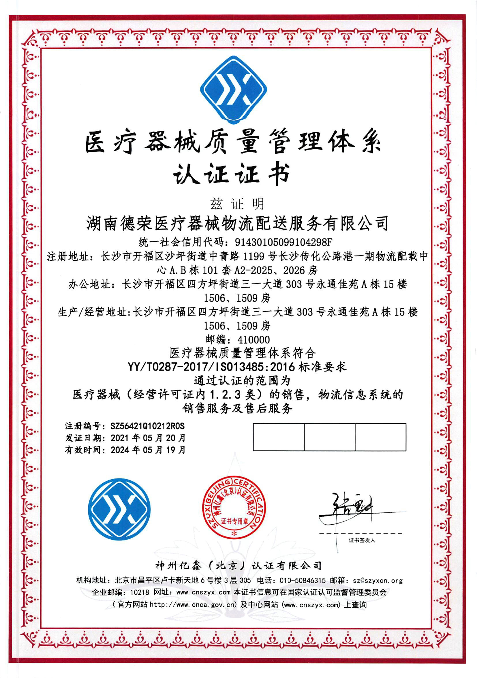 中国长沙市开福区湘江北路91号德荣医疗物流园
